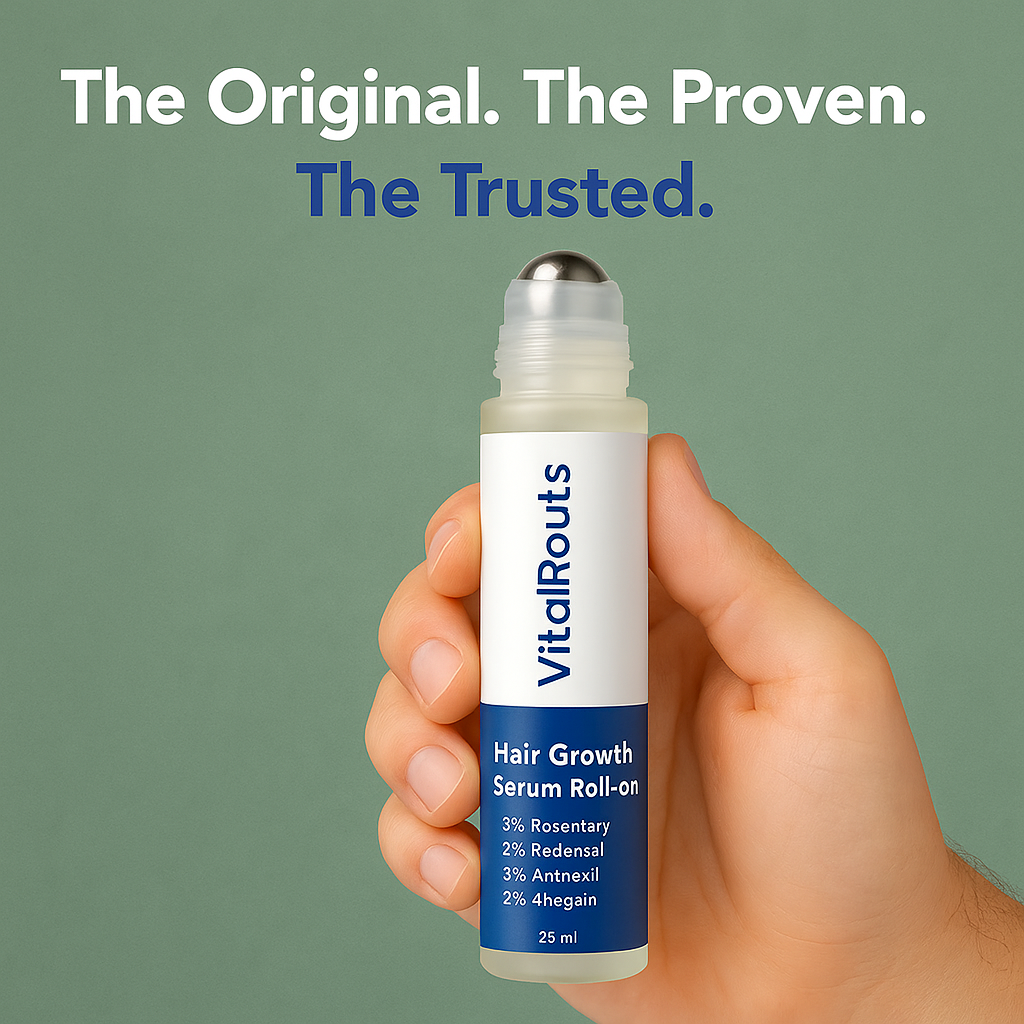 No drugs, no gimmicks. Vital Roots uses a clinically dosed mix of Redensyl, Rosemary, Aminexil, and Anagain - ingredients backed by real science, not side effects.